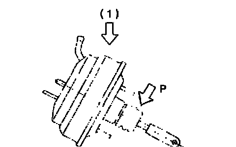 CAUTION: If external force is applied from above when the brake booster is placed in this position, the resin portion as indicated by "P", may be damaged.