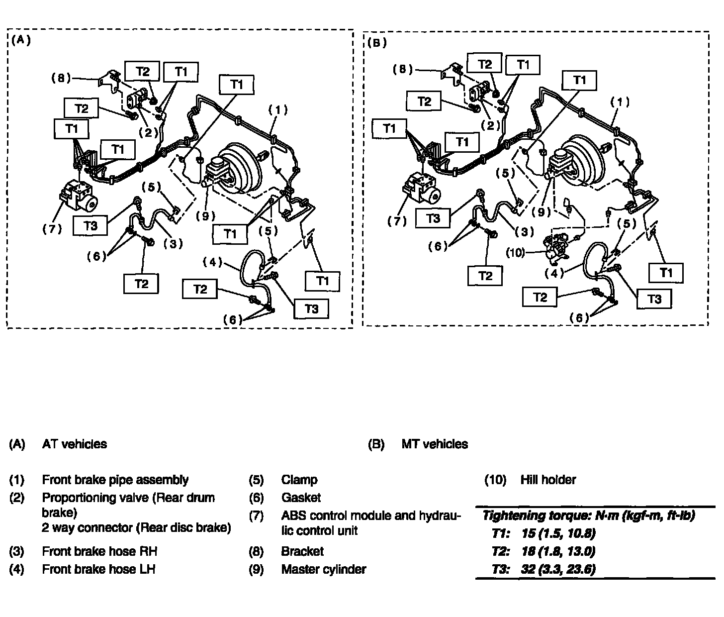 CENTER AND REAR BRAKE PIPES AND HOSES