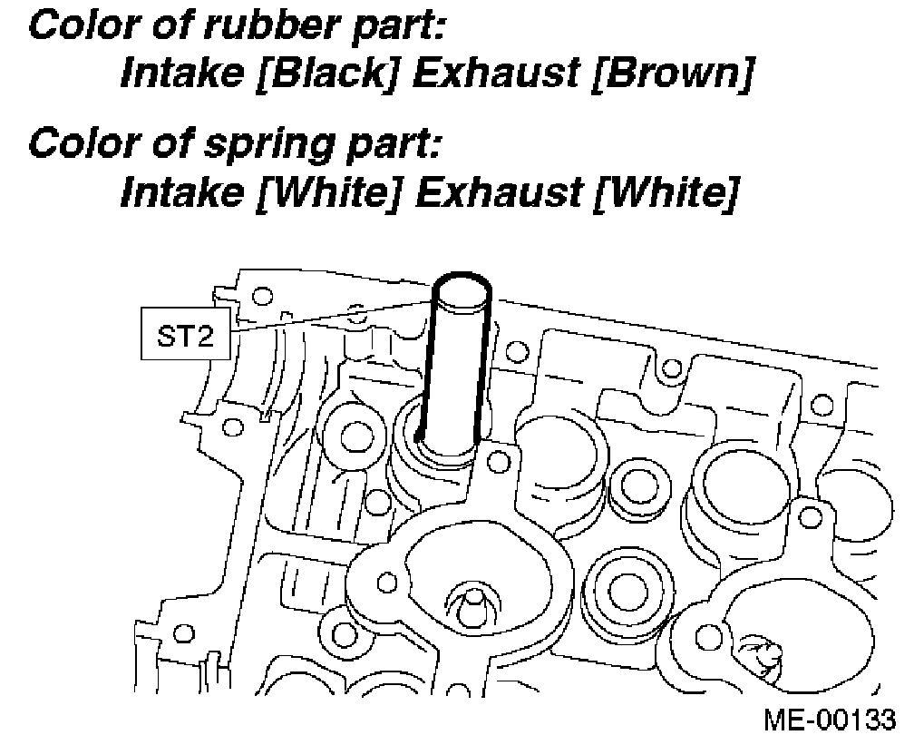 c. Install the valve spring and retainer using ST2.