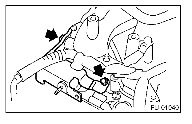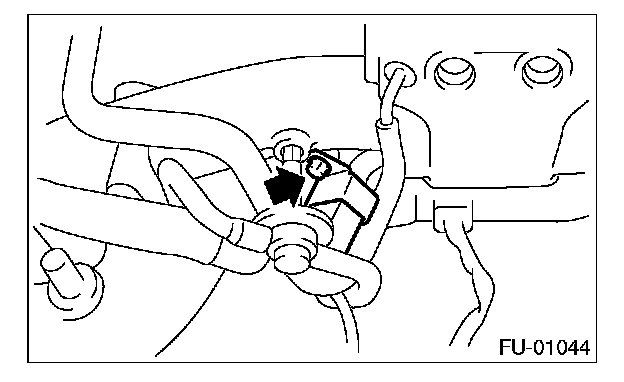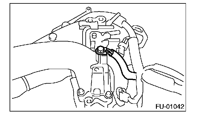 15. Loosen the clamp which holds the front left side fuel hose to injector pipe, and then remove the pipe from clamp.