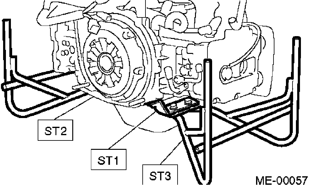 PROCEDURE1. After removing the engine from body, secure it in the ST shown.