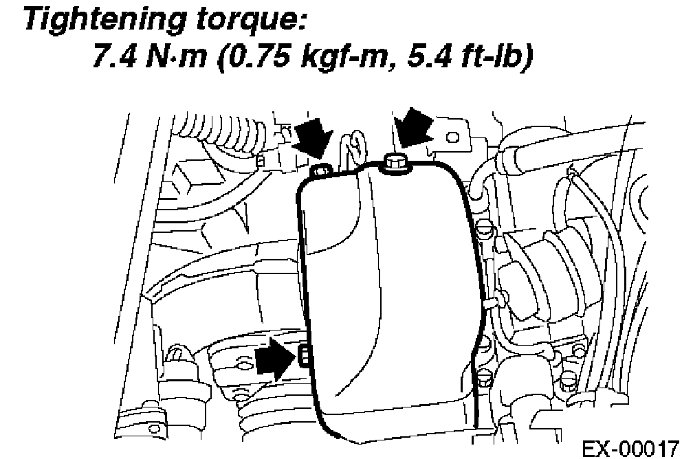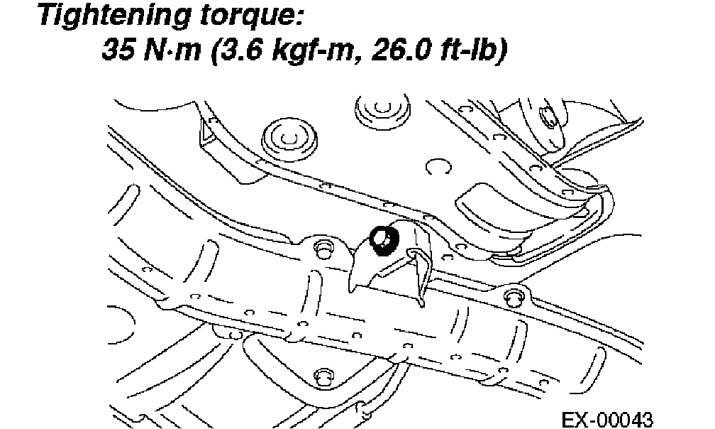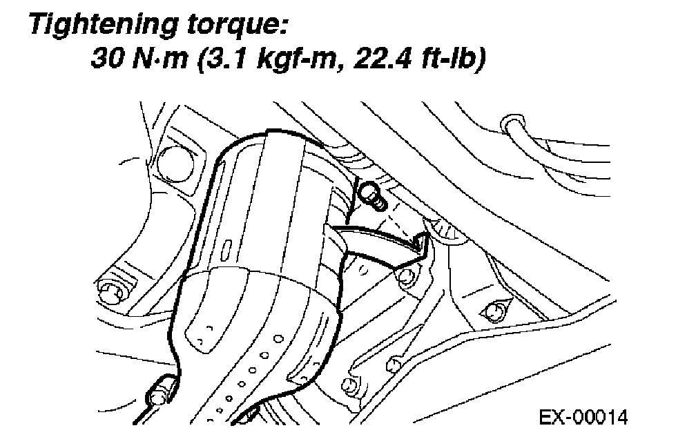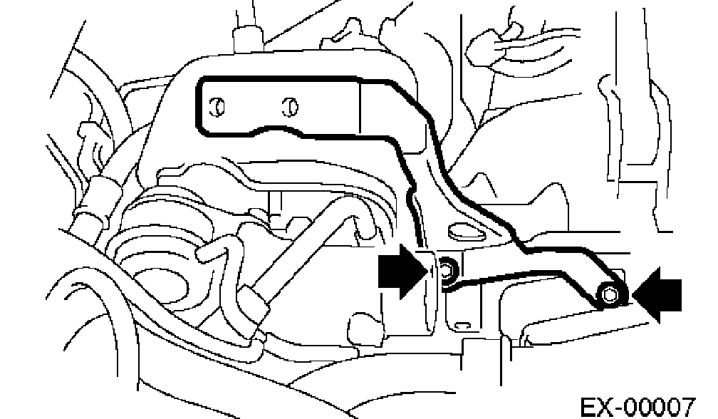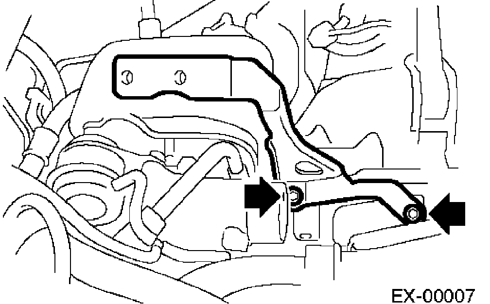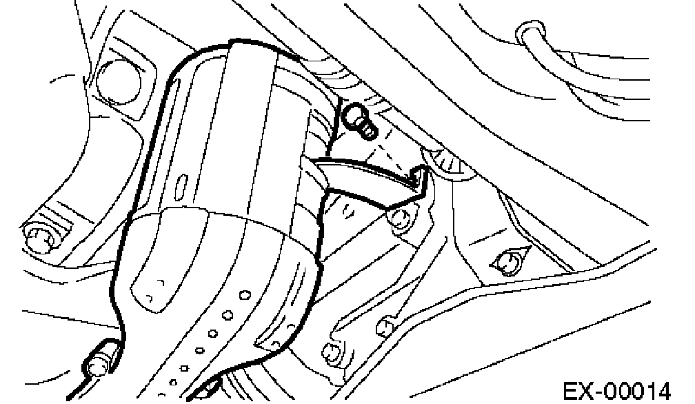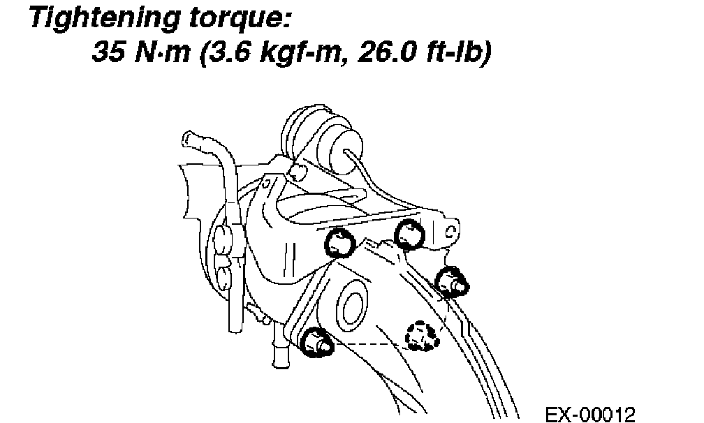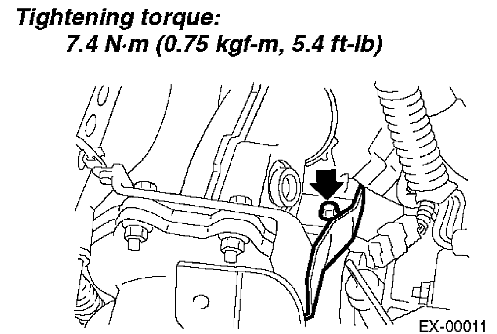 7. Tighten the bolt which holds the center exhaust pipe bracket to transmission.