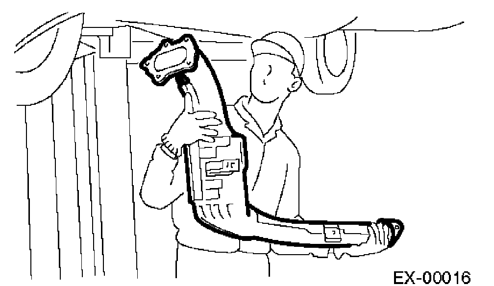 1. Install the center exhaust pipe and temporarily tighten the bolt which holds the center exhaust pipe to hanger bracket.