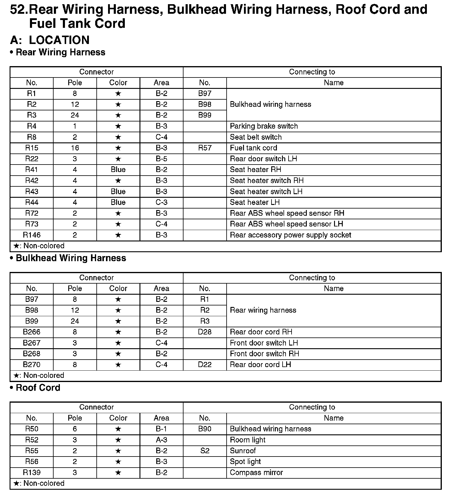 REAR WIRING HARNESS, BULKHEAD WIRING HARNESS, ROOF CORD AND FUEL TANK CORD