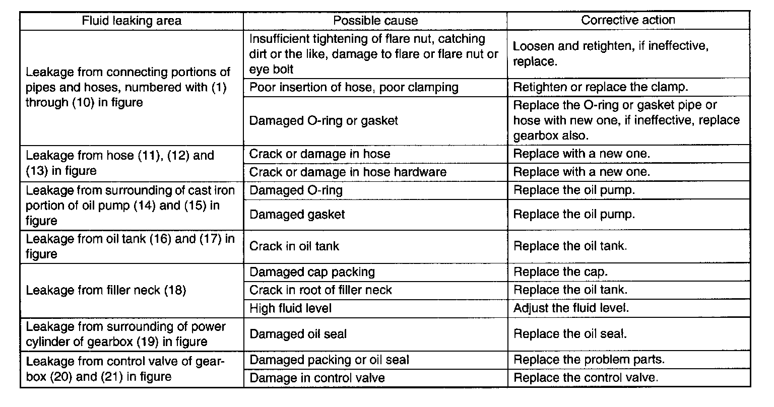 NOTE: It is likely that although one judges fluid leakage, there is actually no leakage. This is because the fluid spilt during the last maintenance was not completely wiped off. Be sure to wipe off spilt fluid thoroughly after maintenance.