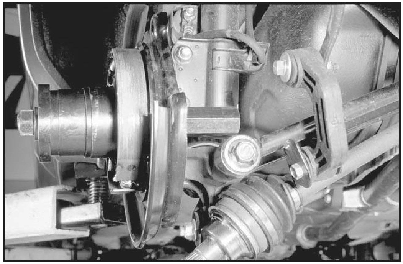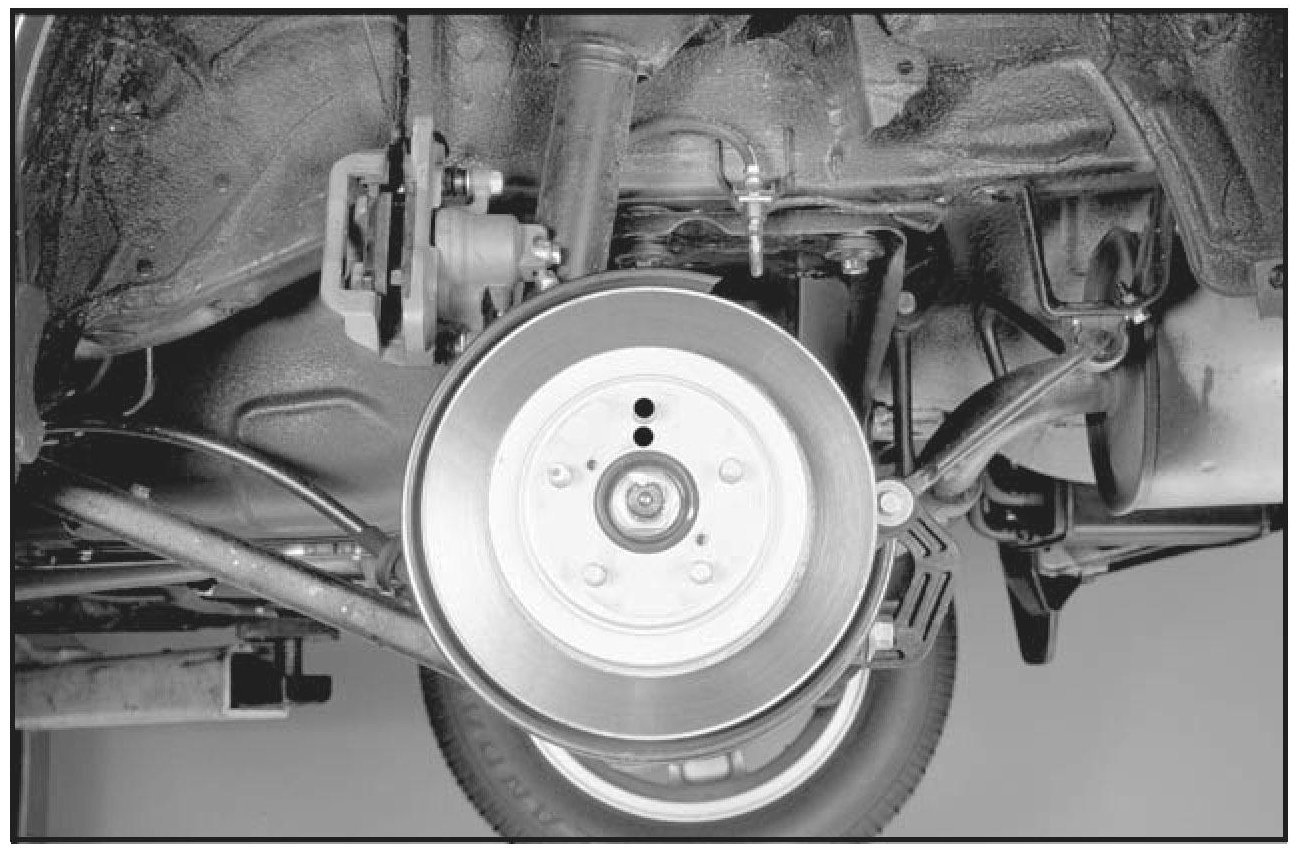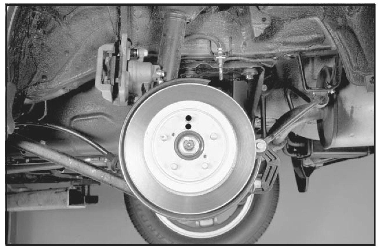 3. Secure the caliper. Place a mark on the hub and rotor so that they can be reassembled the same way they came apart.