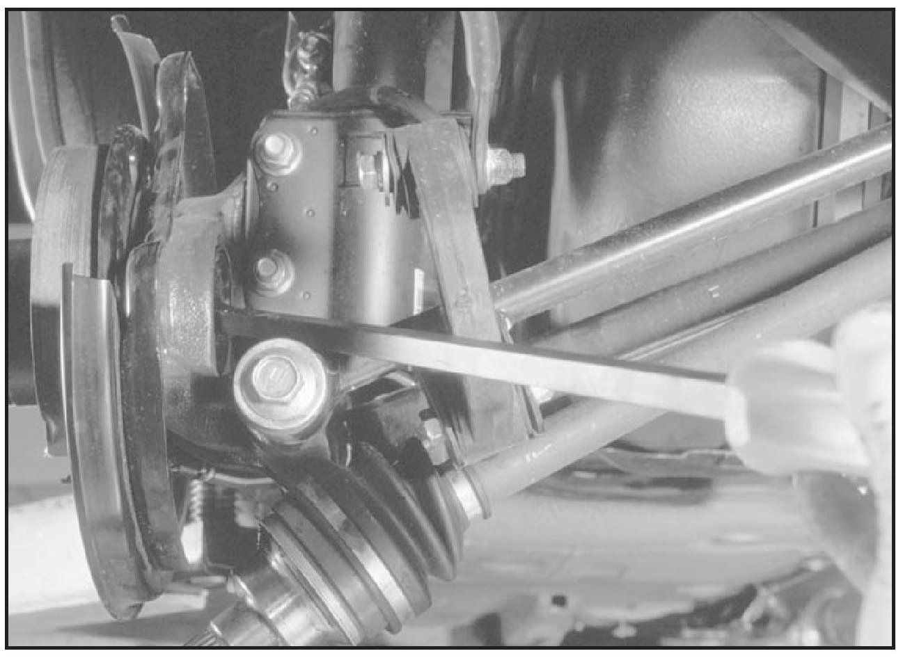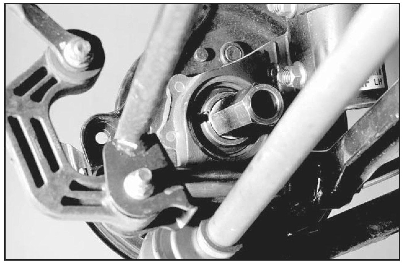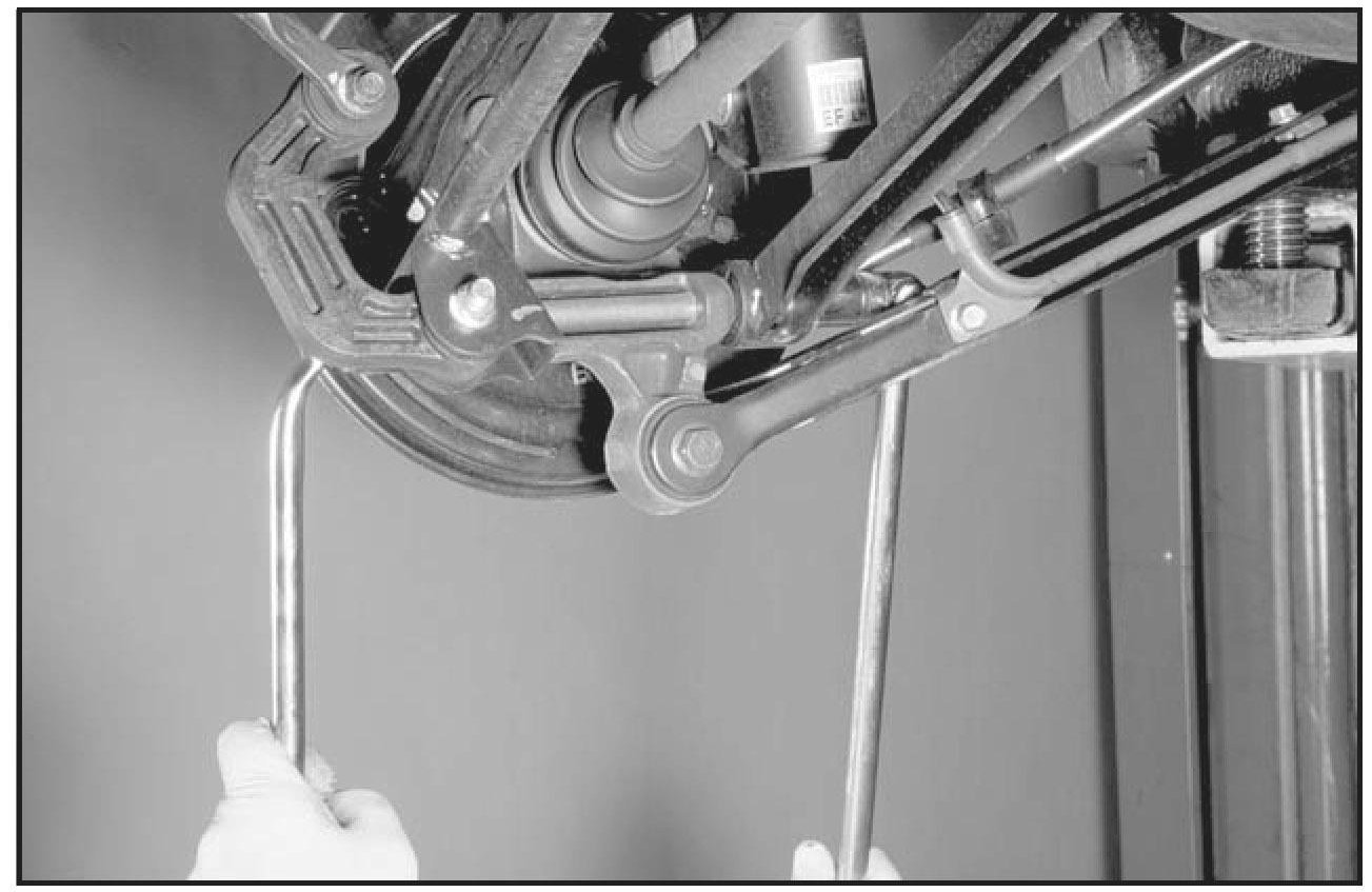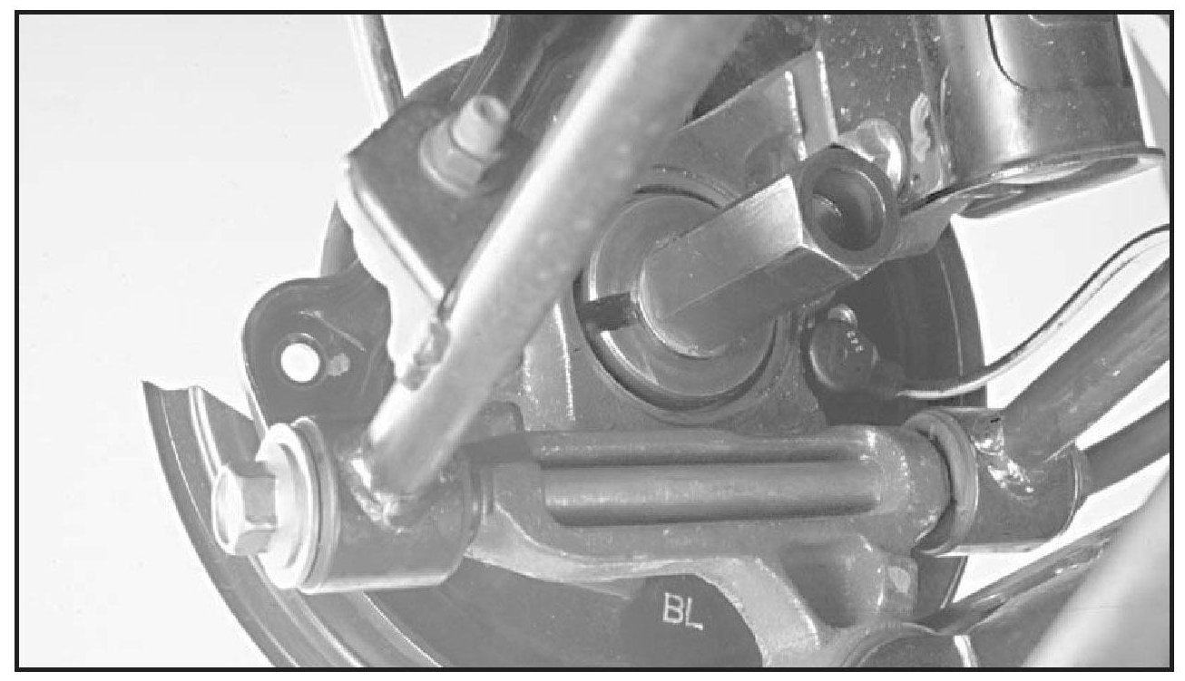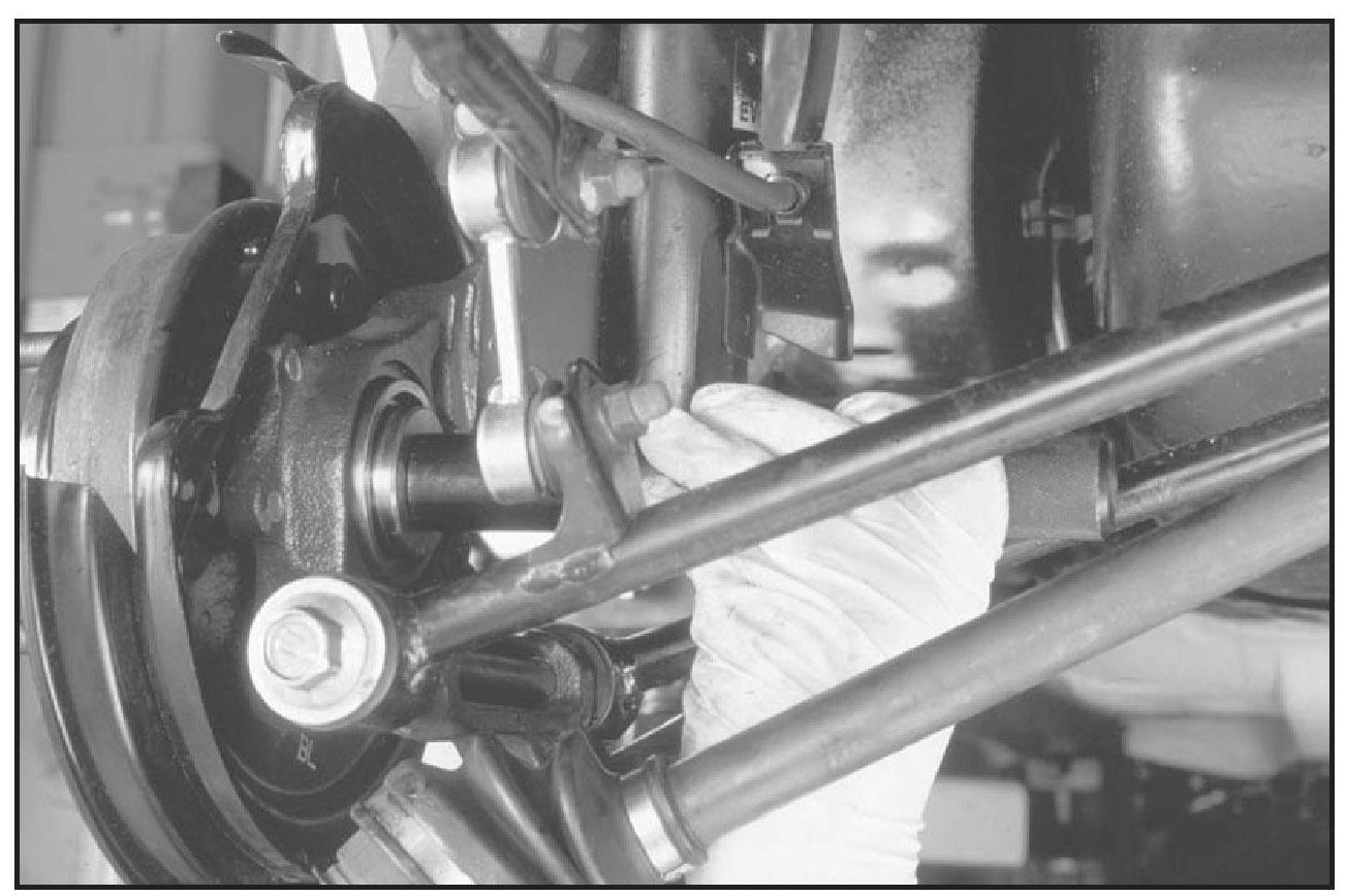8. Set the axle below the lateral link bolt and reinstall the lateral link bolt.