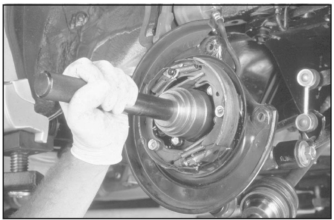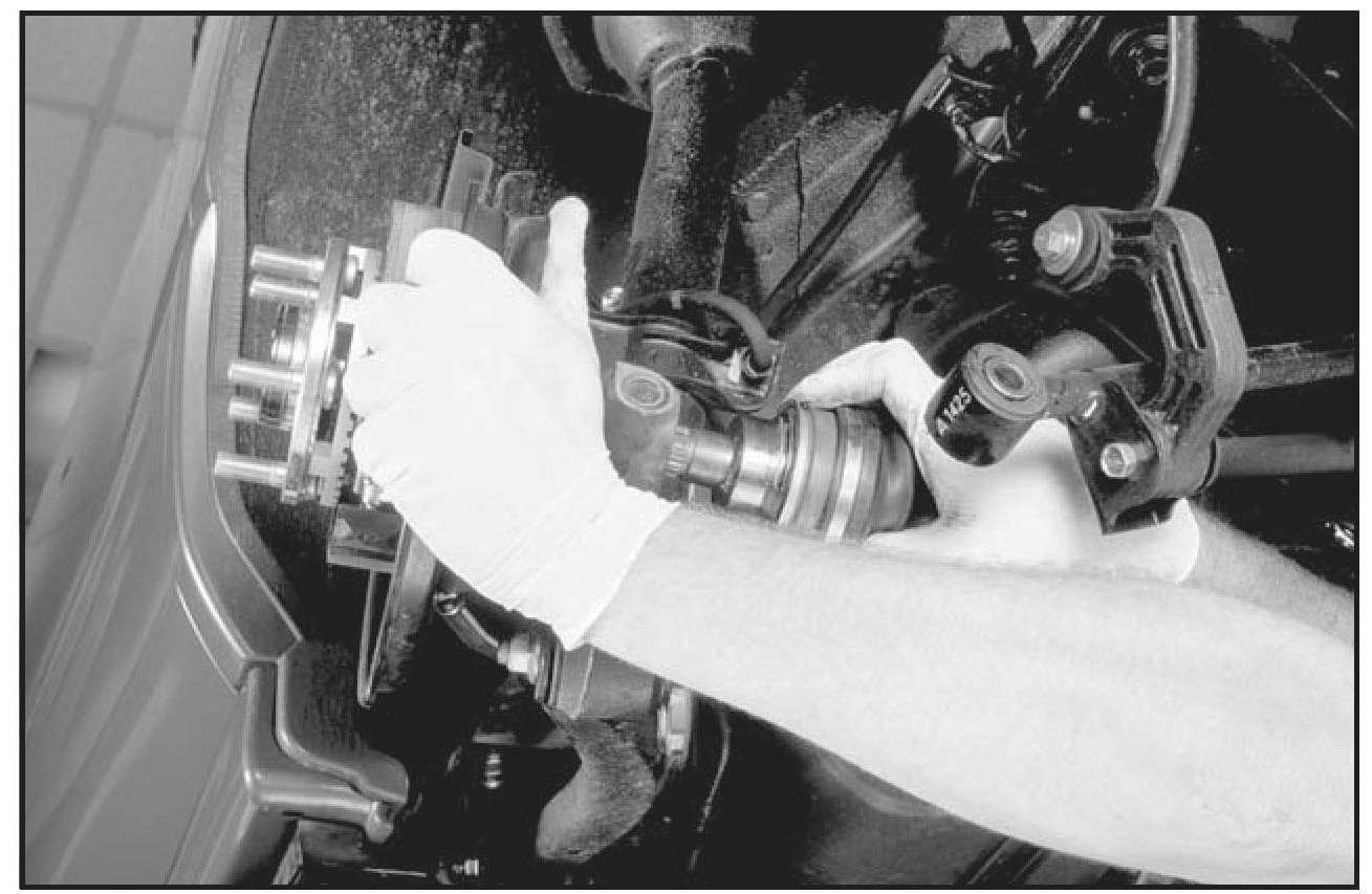 10. Carefully thrust the slide outward until the wheel bearing hub is removed.