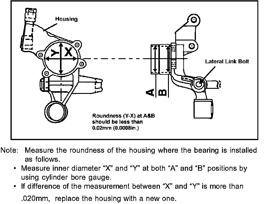 23. Clean and inspect the bearing housing for damage. Use the test outlined below to check for out of roundness condition. Replace bearing housing if out of round.