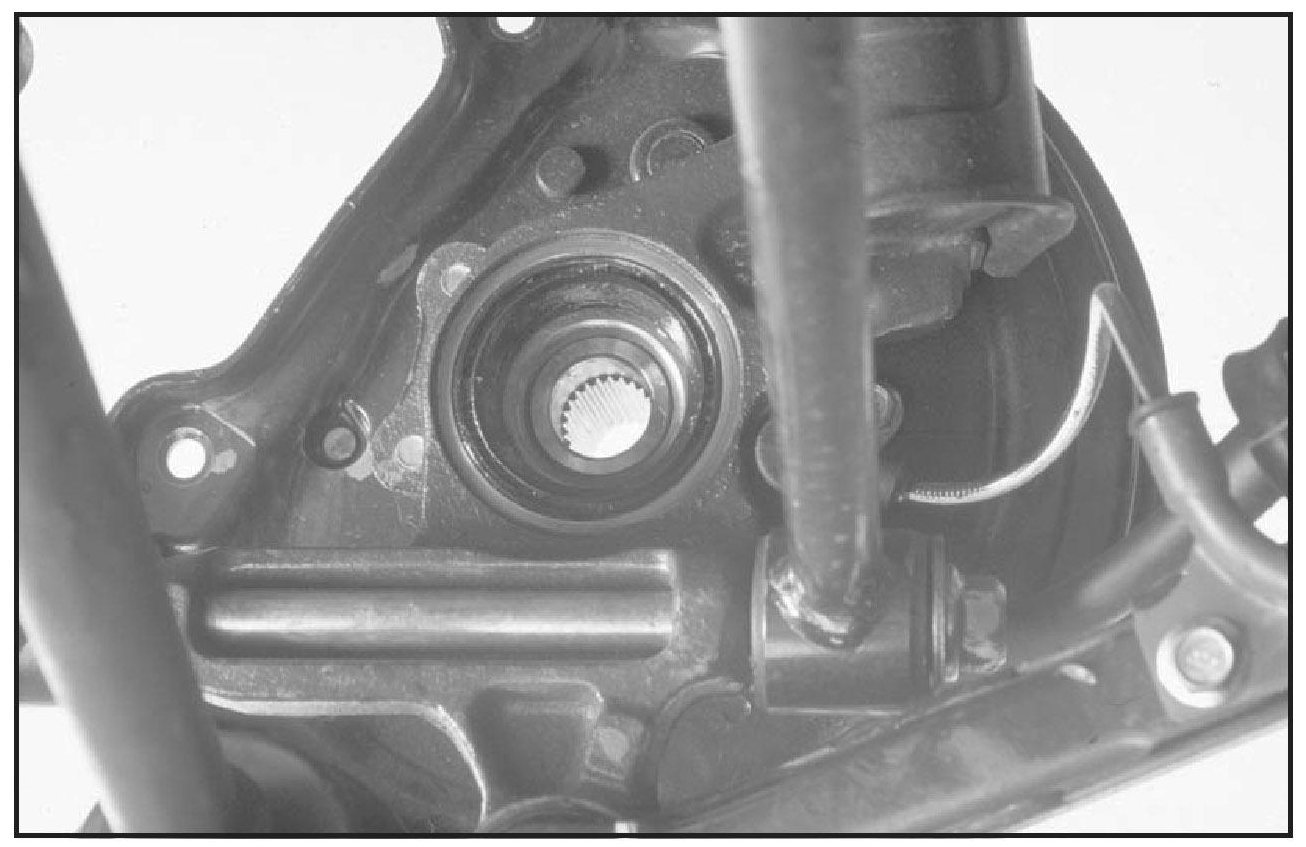 Note: Inspect the axle for any deep scratches, pitting and damage to the dust shield. Replace if necessary.