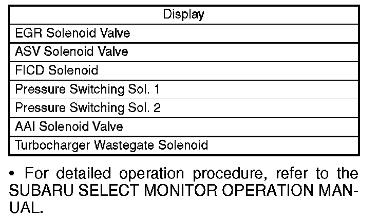 - For detailed operation procedure, refer to the SUBARU SELECT MONITOR OPERATION MANUAL.