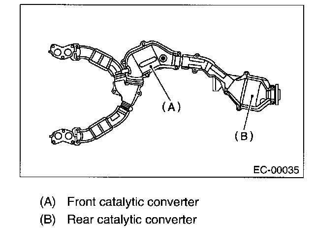 REMOVALThe front and rear catalytic converter and center exhaust pipe are integrated into one unit. Therefore, the removal procedures are the same as those for the center exhaust pipe.