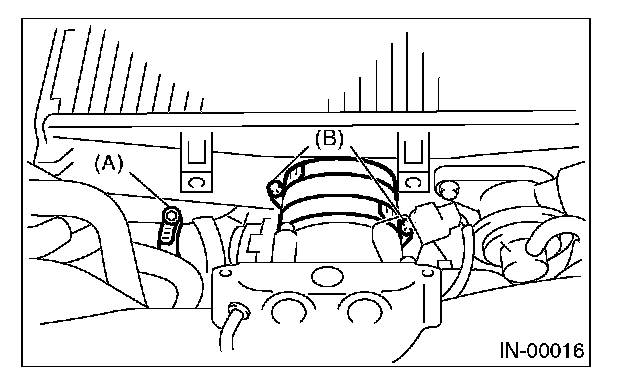 6. Loosen clamp (B) which connects throttle body and intercooler.