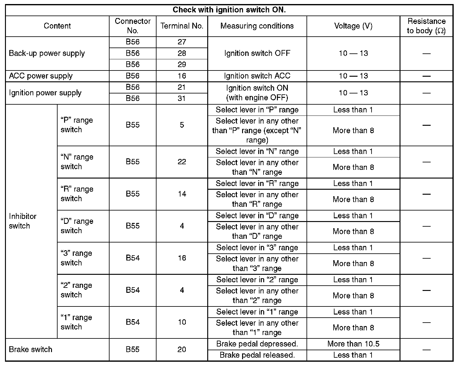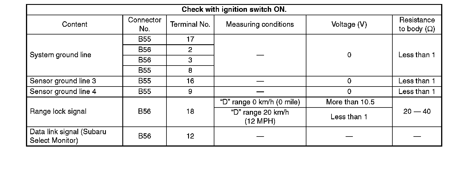 Pinout Values and Diagnostic Parameters