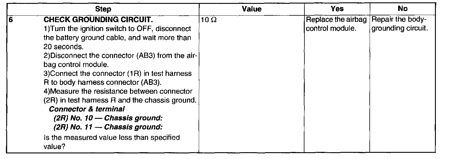 CAUTION: Before diagnosing the airbag system, be sure to turn the ignition switch to OFF, disconnect the ground cable from battery, and wait more than 20 seconds before starting to work.