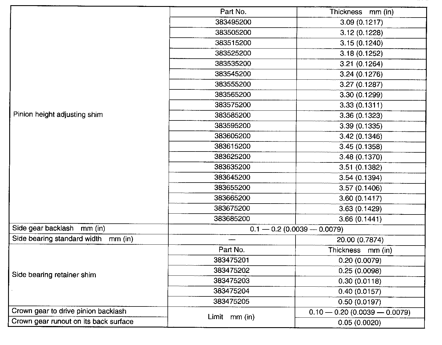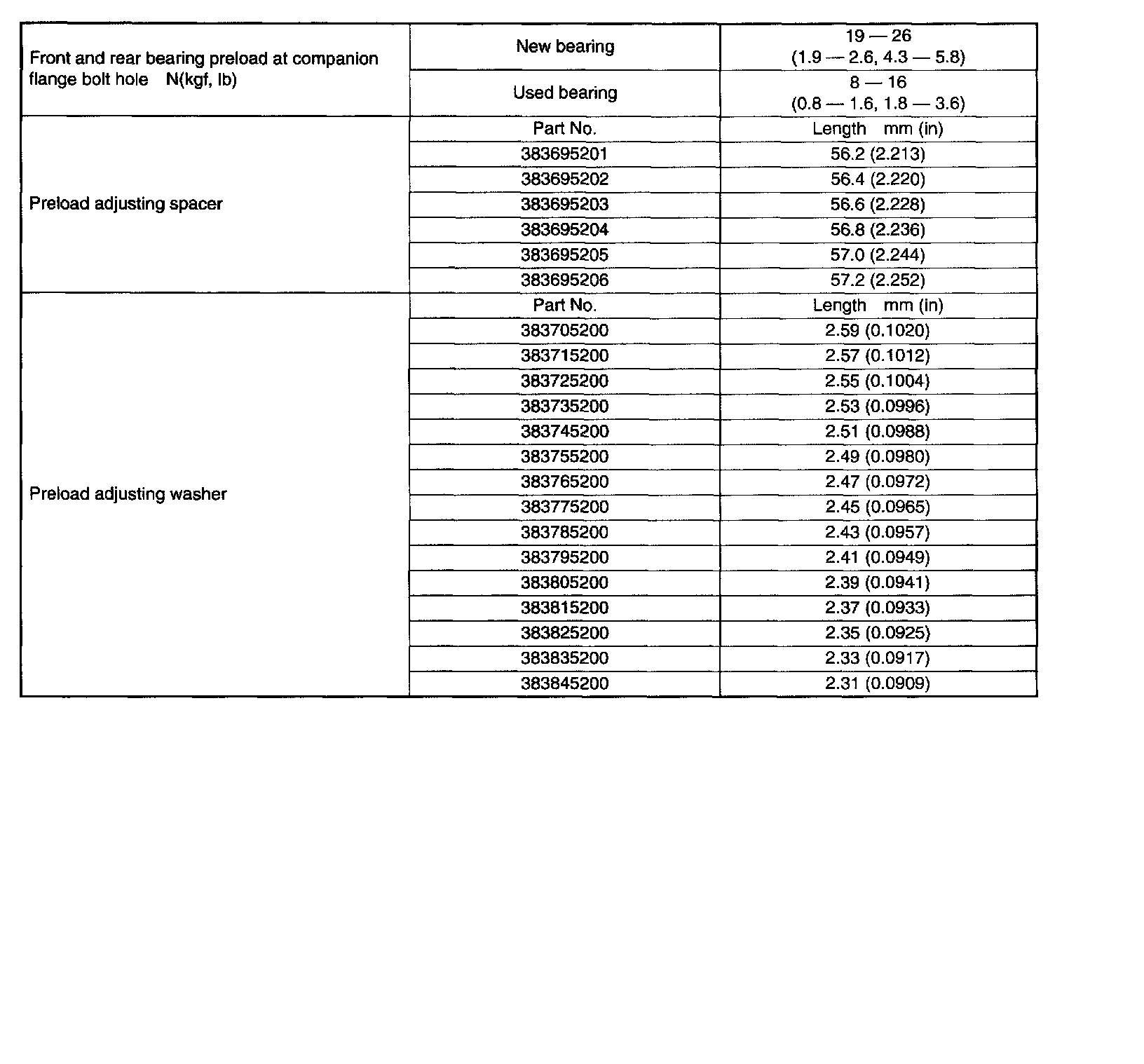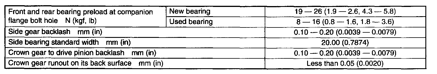 SPECIFICATIONSWhen replacing a rear differential assembly, select the correct one according to the following table.