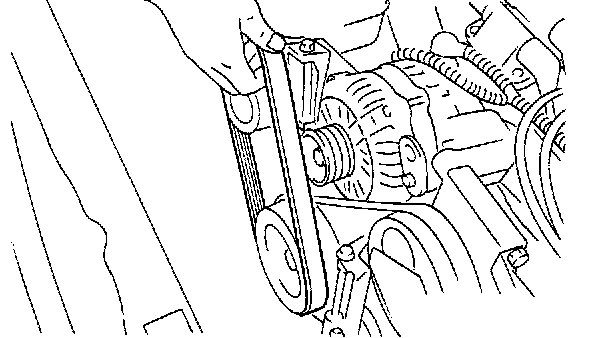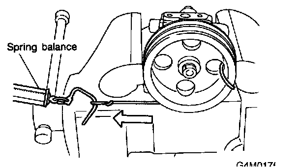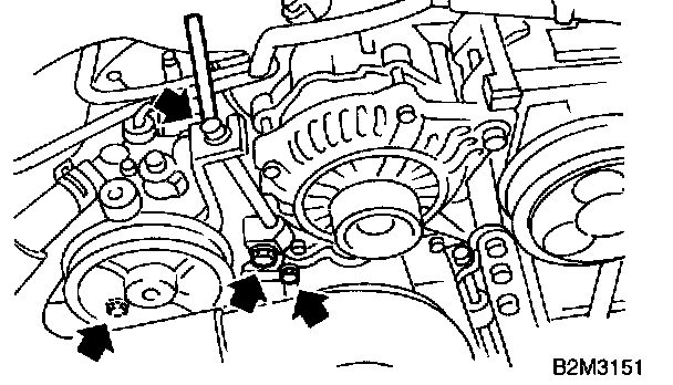 3) Loosen the lock bolt and slider bolt, and then remove the power steering pump drive V-belt.