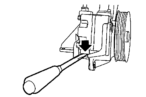 9) Disassemble the oil pump and bracket by inserting a flat tip screwdriver as shown in the figure.