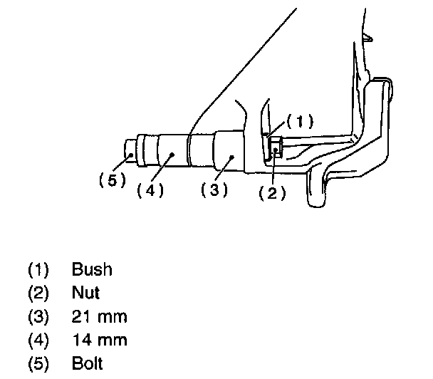 1) Place the oil pump bracket in a vise. Tighten the bushing using a 12.7 mm (1/2") type 14 and 21 mm box wrench until it is in contact with the oil pump mounting surface.