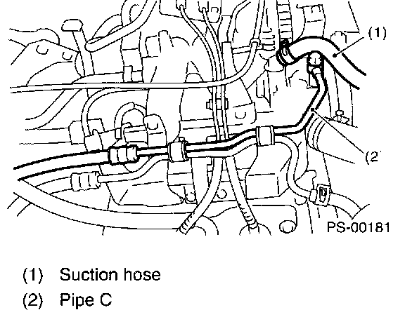 4) Using the gasket (Part No. 34621 AC021) and bolt (Part No. 34620AC010), install the ST2 to the pump instead of pipe C.