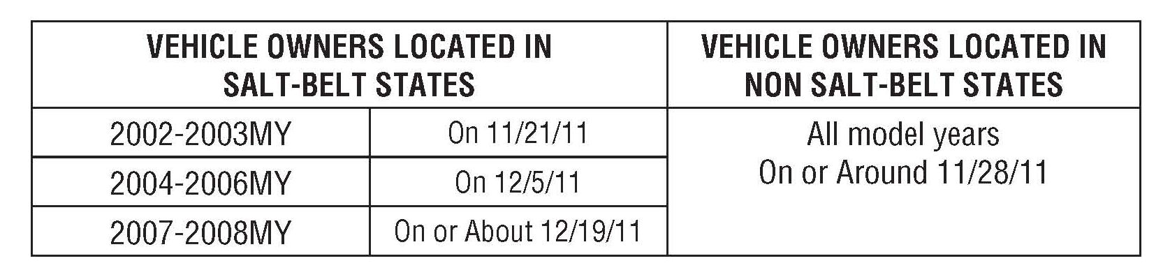 Notification letters will only be mailed to owners of vehicles that currently reside in, or the vehicle has ever been registered in, at least one of the "salt-belt" states.