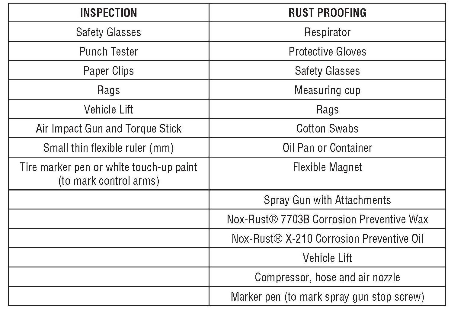 The inspection will require checking for rust perforation of the right and left hanger bracket portion of the front lower control arms.