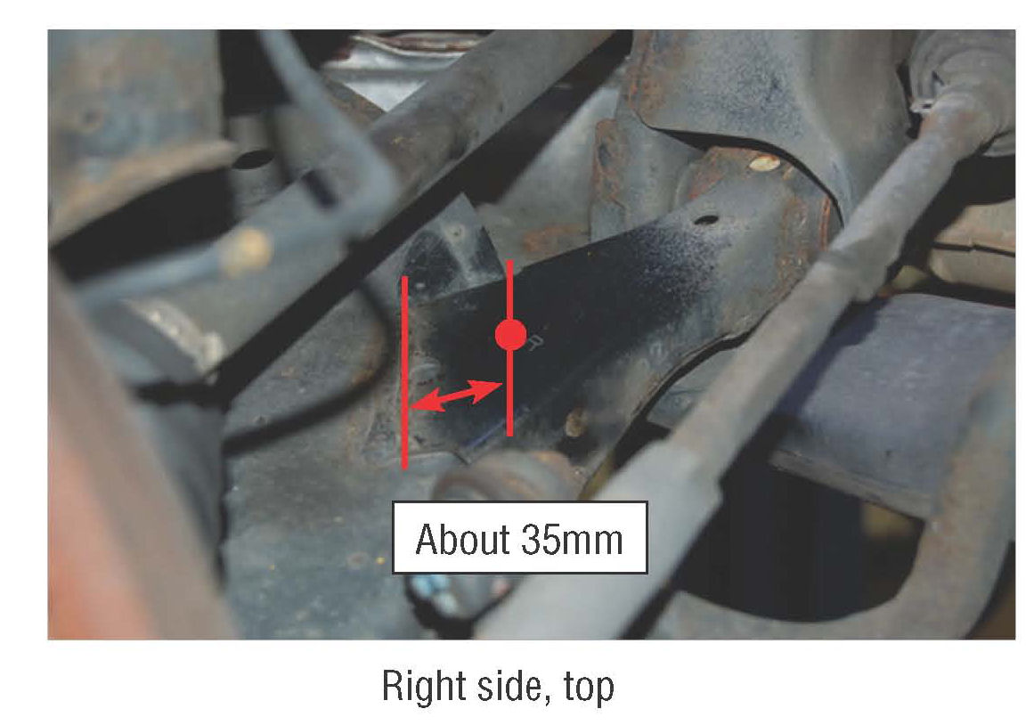 Starting on the right side use a rag and remove any dirt, mud, surface rust or under coat from the top and bottom surfaces of the hanger bracket for measuring the location for punch testing.