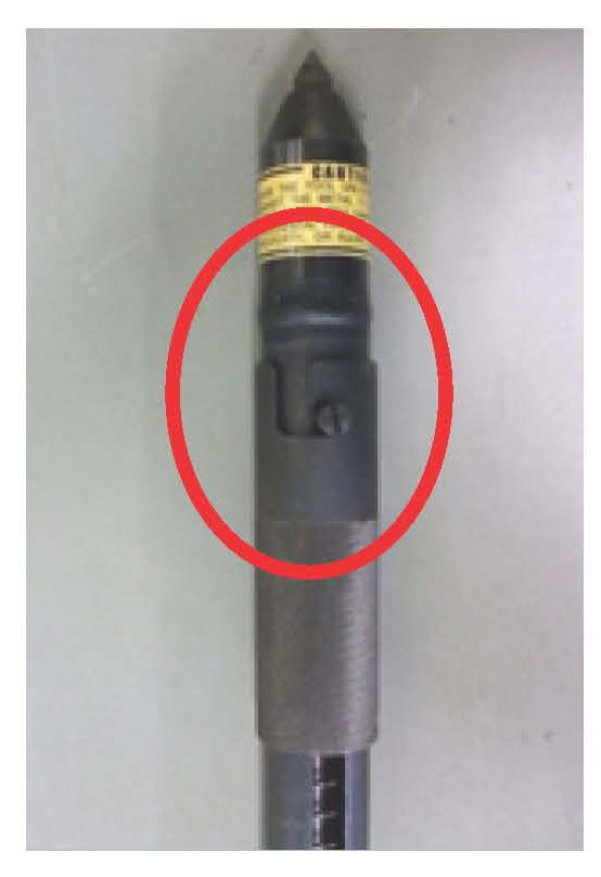 Firmly set the tip of the punch tester vertically at the previously marked point While pushing up, hold the handle and twist the trigger tube clockwise to trigger punch test.