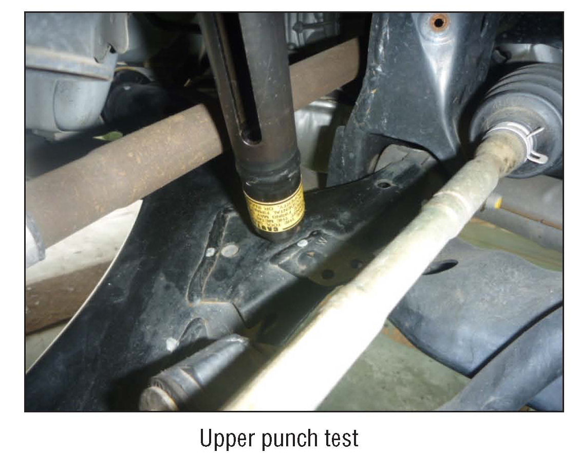 2) "Punch test" the upper and lower portions of the hanger bracket area of both front lower control arms