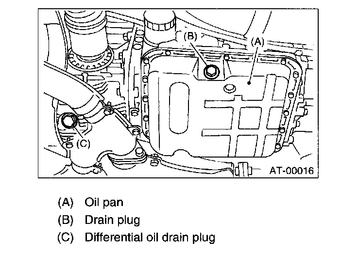 6) Replace the gasket with a new one, and then tighten the drain plug (ATF).