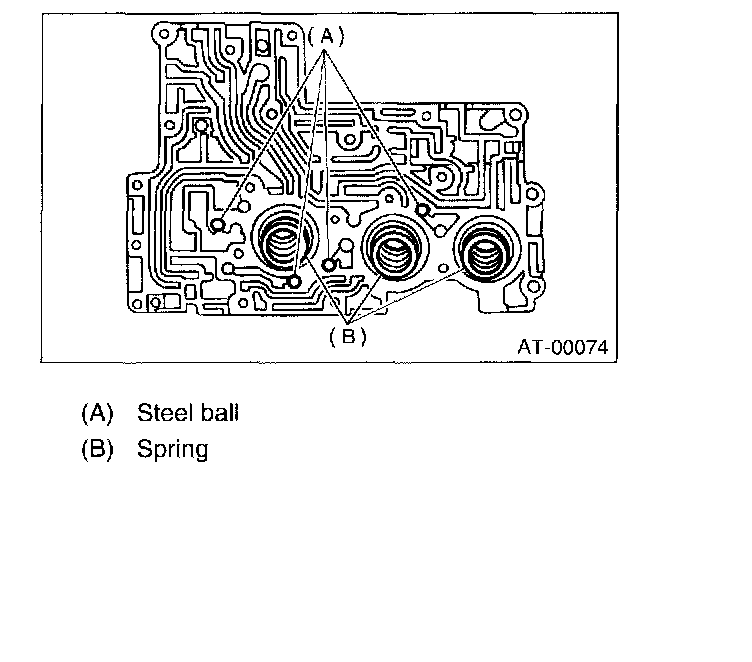 4. Install the spring and four steel balls to specified positions of upper valve body.
