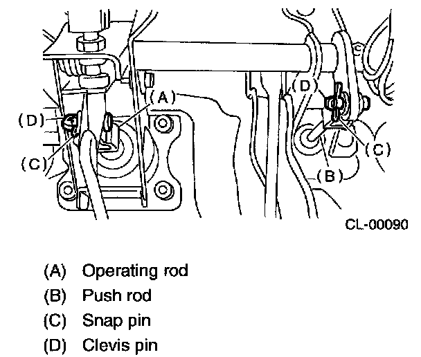 3. Remove the snap pins which secure lever to push rod and operating rod.