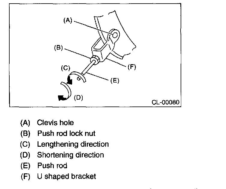 6. Turn the push rod counter clockwise to lengthen until clutch pedal contacts to stopper bolt.
