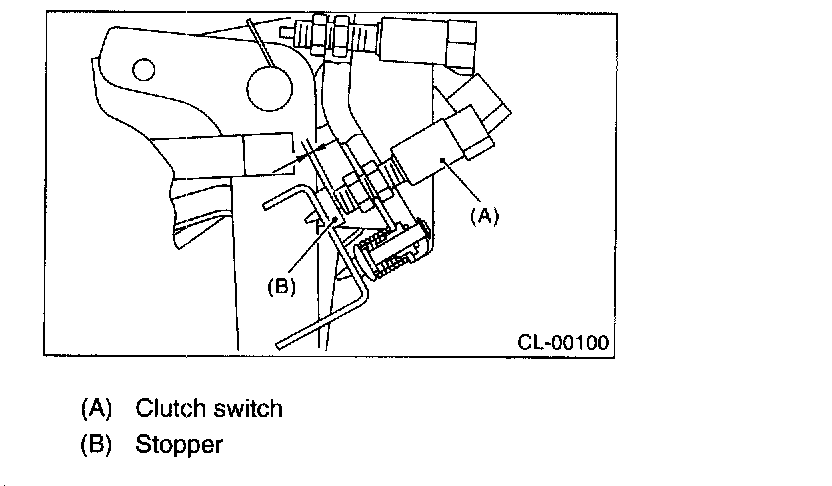 5. Turn the push rod clockwise to shorten until clearance is made at stopper bolt or clutch switch.