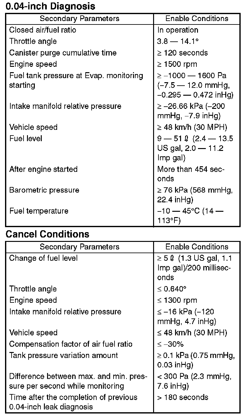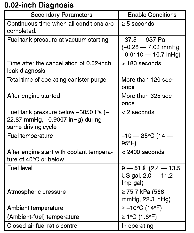 In the case of small leakage diagnosis, the tank pressure variation is very small, that is, 0.13 to 0.27 kPa (1 to 2 mmHg, 0.04 to 0.08 inHg) and the fuel tank pressure sensor is equipped.