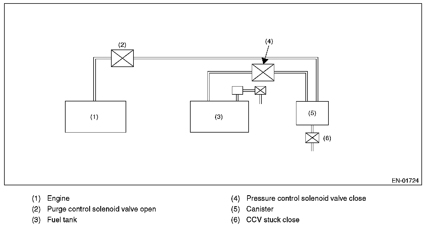 When performing the leakage diagnosis of EVAP system, CCV and CPC have to operate normally. Therefore, mode Z is used to diagnose the CCV close fixation and CPC open fixation. If the CCV closed fixation trouble or CPC open fixation trouble is detected, the EVAP system leakage diagnosis is cancelled.