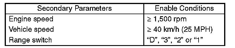 Perform the diagnosis at engine speed more than 1500 rpm and vehicle speed more than 40 km/h (25 MPH).
