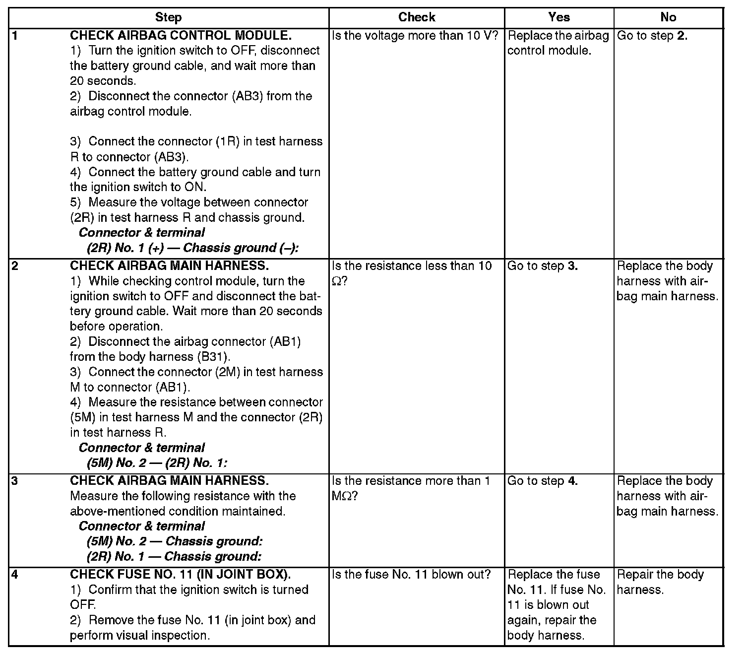 - Airbag main harness is open.