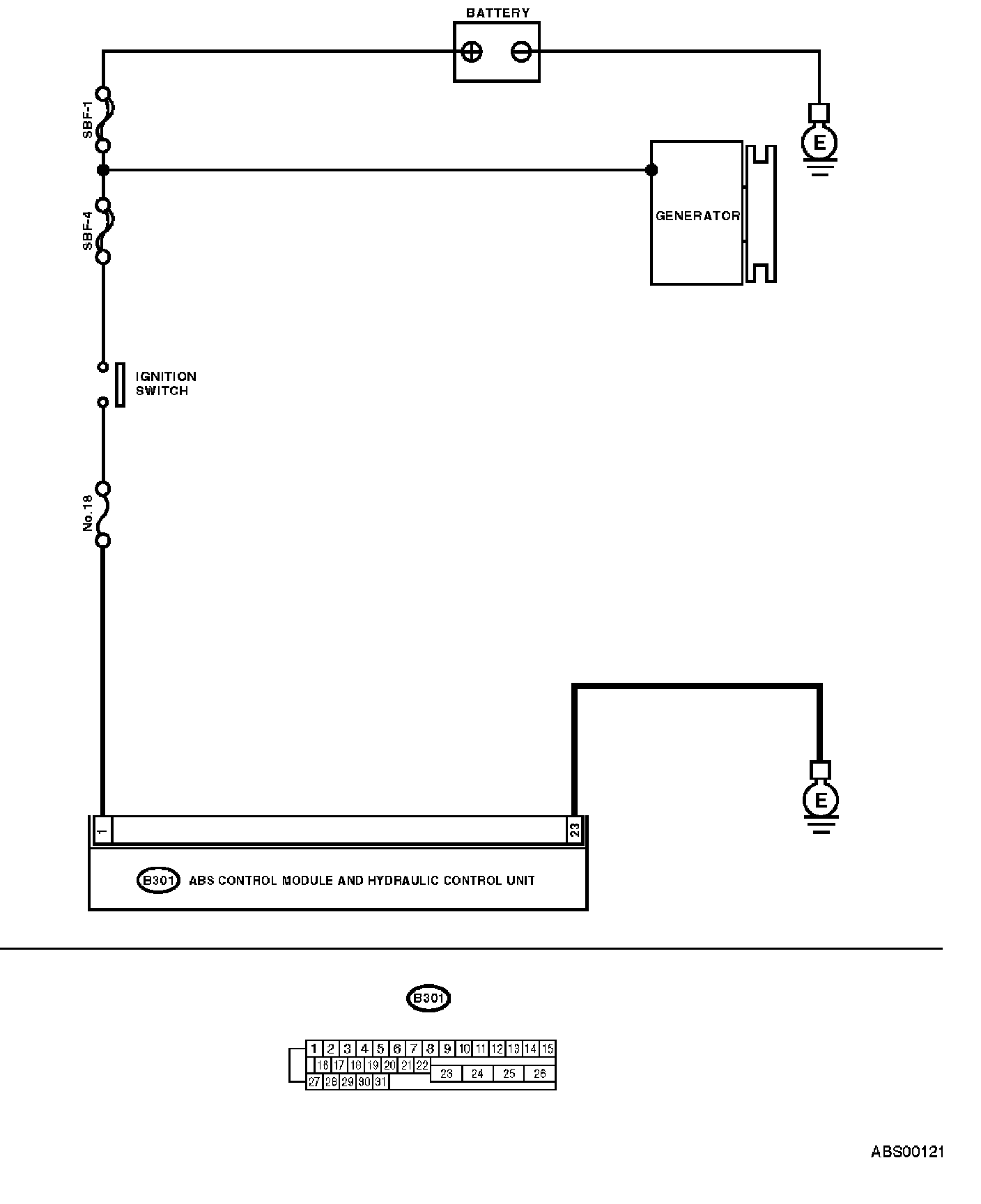 NOTE: In addition to the ABS warning light, brake warning light illuminates temporarily. Both warning lights go off on the recovery of voltage.