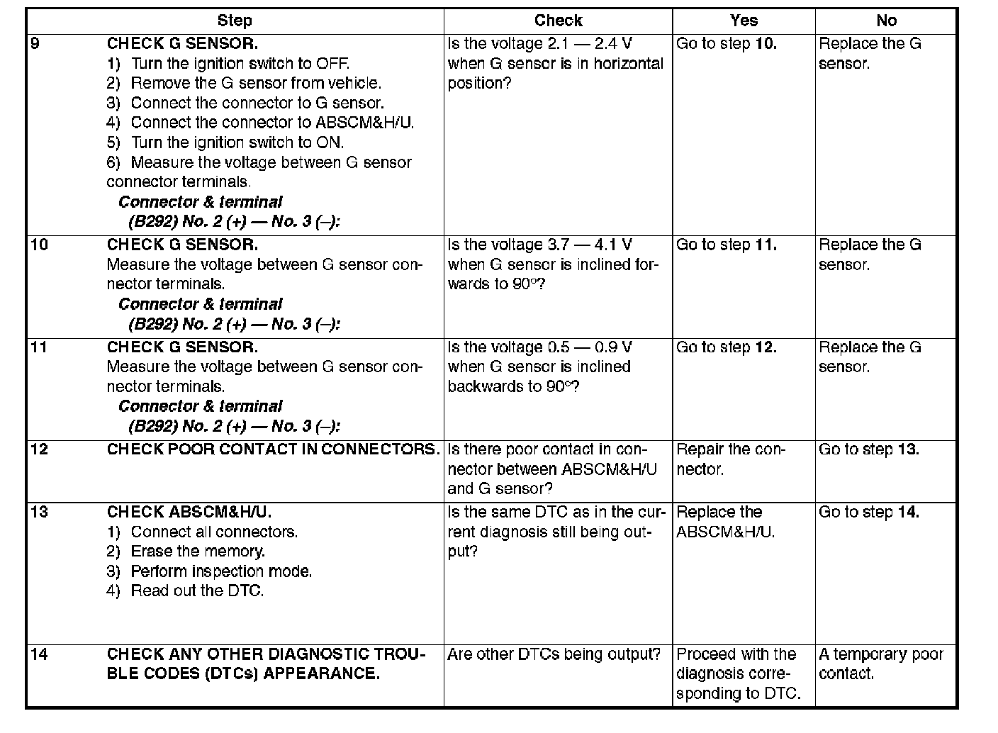 ABNORMAL G SENSOR OUTPUT VOLTAGE -