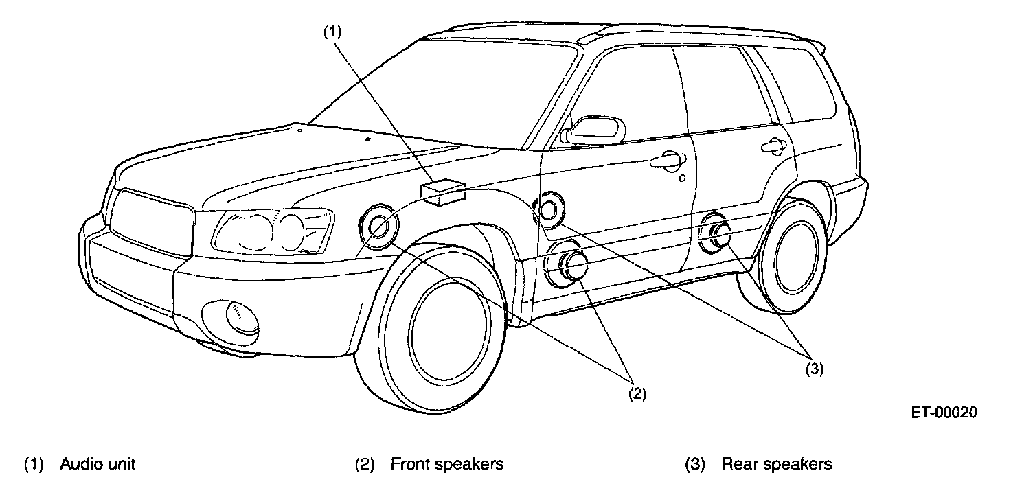 - A four speaker system consisting of two front speakers and two rear speakers is used.