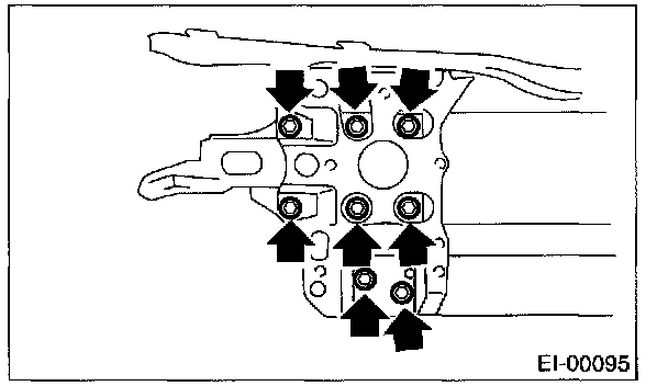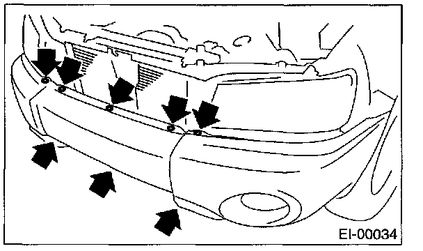 9. Remove the eight bolts to disassemble the front bumper beam.