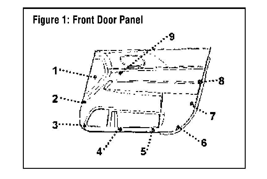 When replacing the Front Door Trim panel clips, refer to the chart and Figure 1 for proper clip replacement.