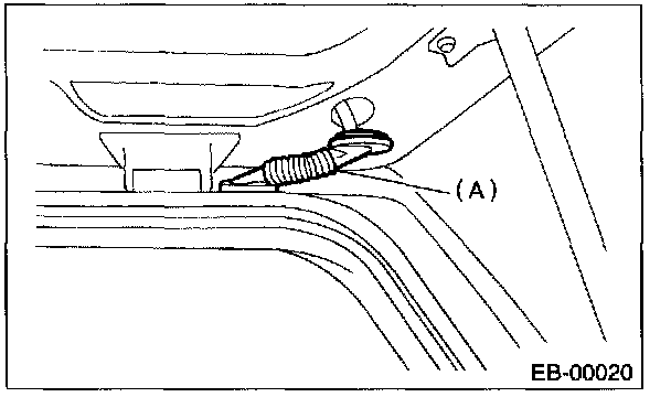 1. Install the mounting bolt (A) to the rear gate panel and body.