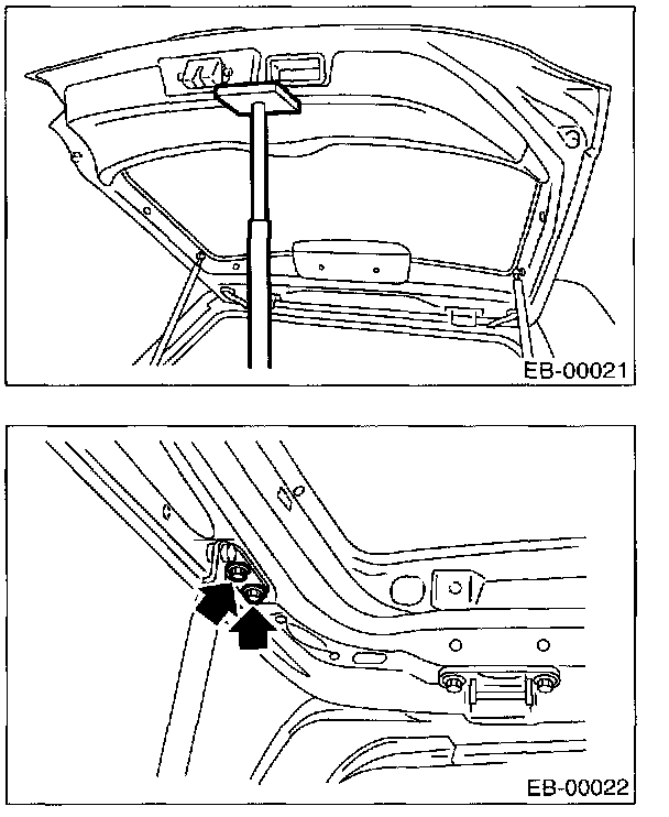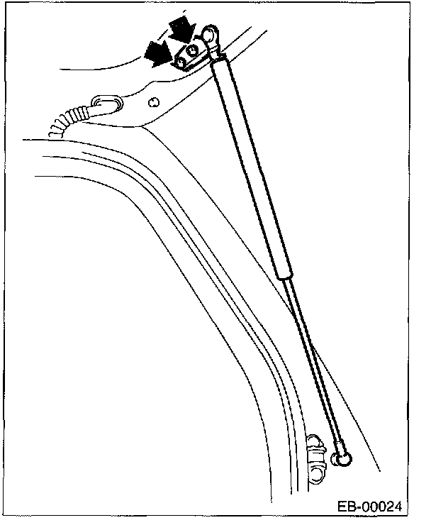 11. Using a support, support the rear gate while removing gas stay mounting bolts.
