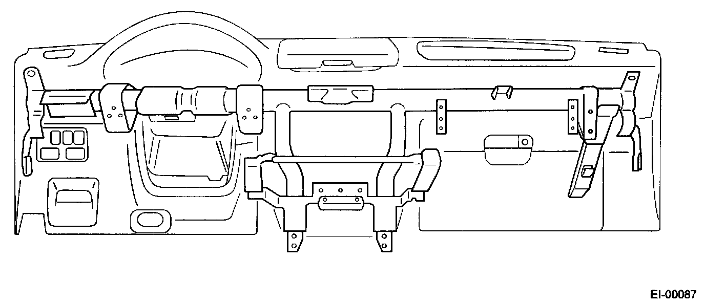 STEERING SUPPORT BEAM- The steering support beam is installed to the instrument panel. At the rear side of the instrument panel, the steering support beam is fixed to the left and right front pillars.