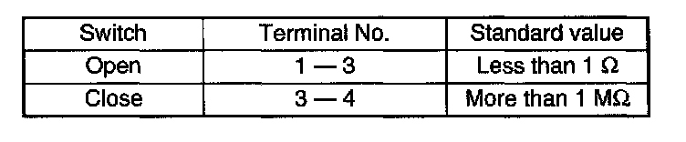 Check continuity between terminals when operating the switch.