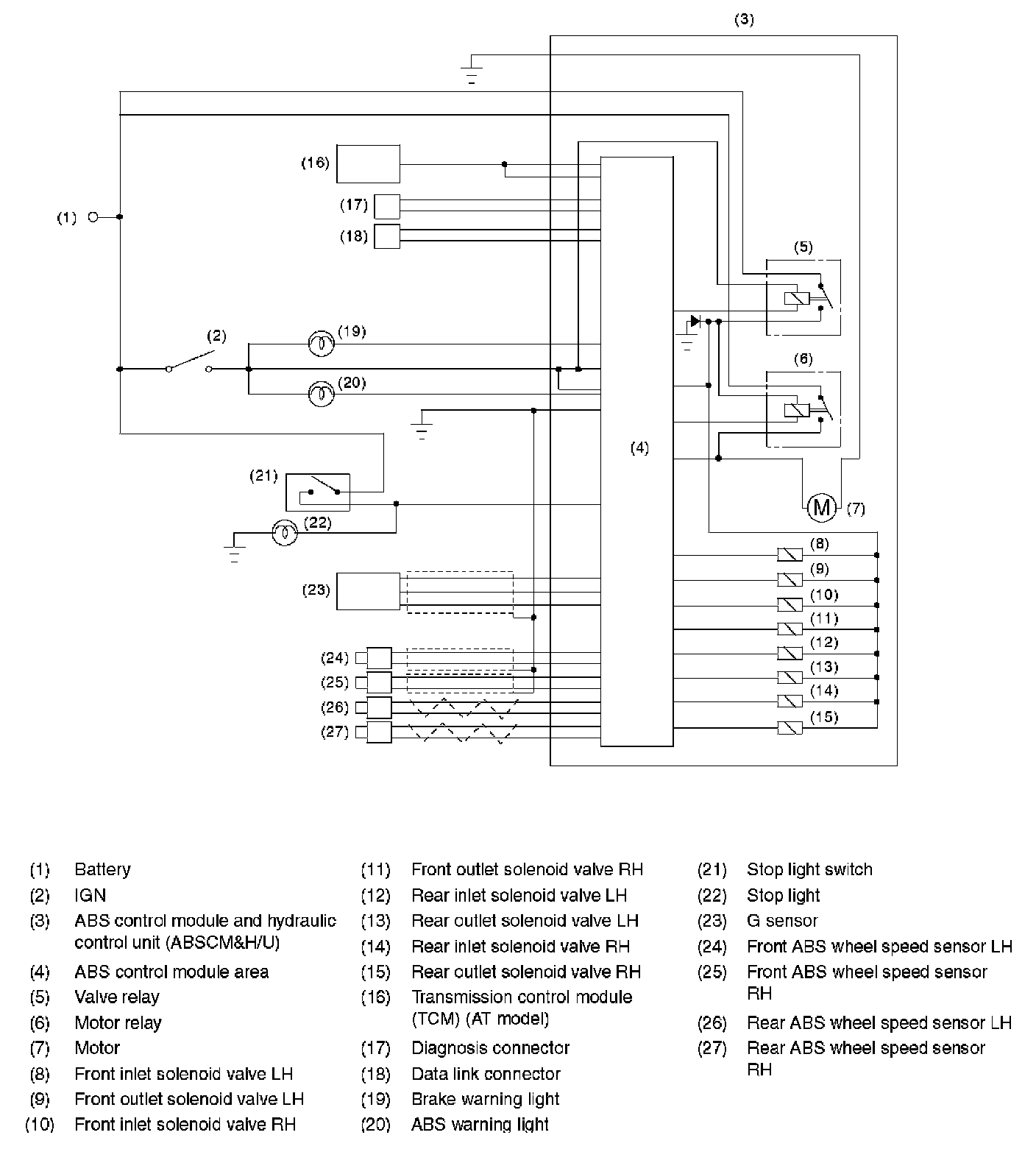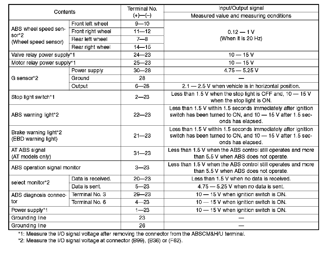 ^ The terminal numbers in ABS control module and hydraulic control unit (ABSCM&H/U) connector are as shown in the figure.
