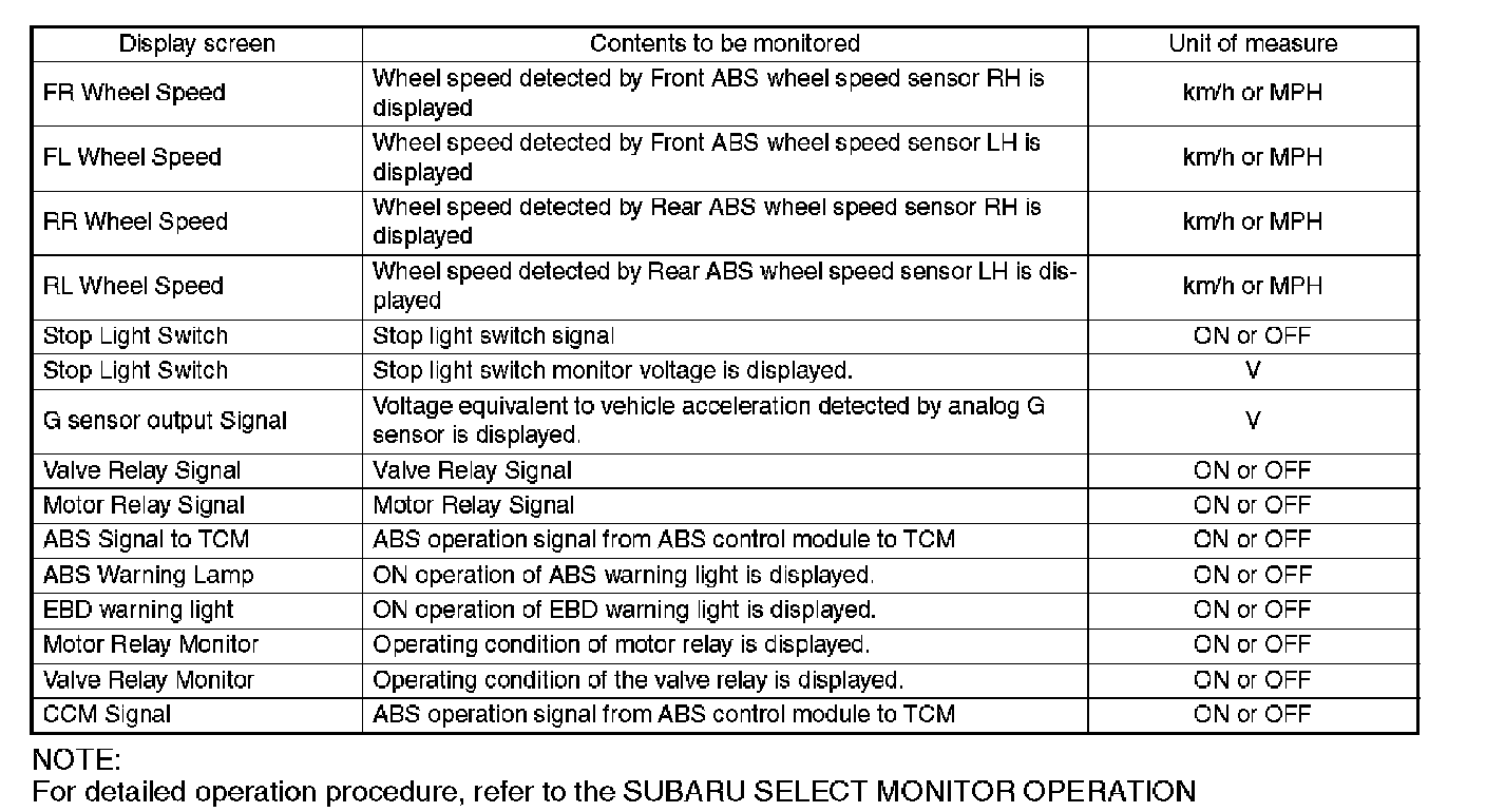 ^ For detailed operation procedure, refer to the SUBARU SELECT MONITOR OPERATION MANUAL.