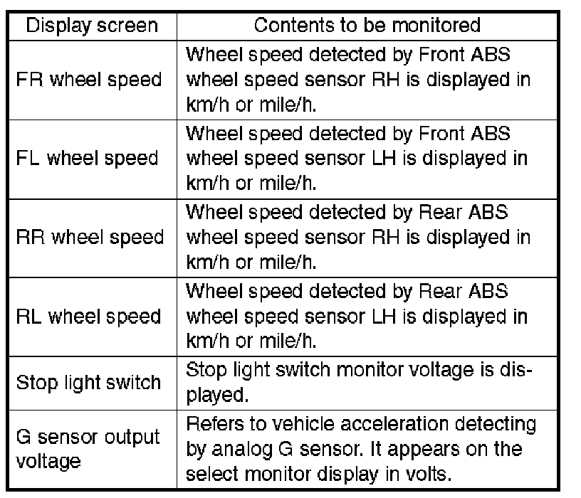 ^ If freeze frame data is not properly stored in memory (due to a drop in ABSCM power supply, etc.), a DTC, preceded by a question mark "T', appears on the select monitor display. This shows it may be an unreliable reading.
